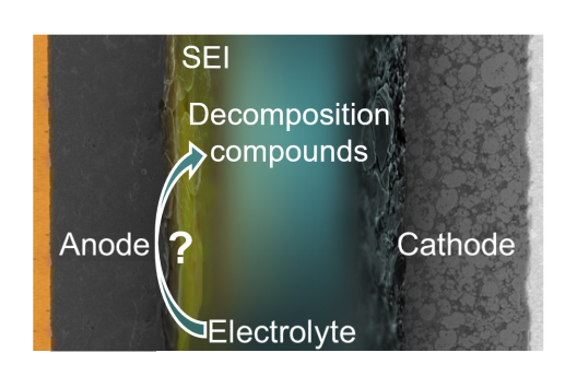Um die Zersetzungswege der einzelnen Produkte zu verstehen, haben die Wissenschaftler in der Studie einen Elektrolytbestandteil isotopenmarkiert. Mithilfe der Massenspektrometrie und Fragmentierungsexperimenten stellten sie anschließend fest, an welcher Position im Molekül sich die markierten Zersetzungsprodukte befinden und zogen auf dieser Basis Rückschlüsse über deren Bildung.