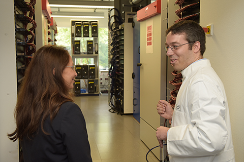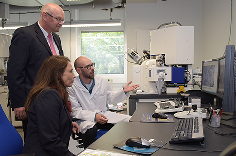 Schwerpunkt des Besuchs am MEET war die Besichtigung des Technikums, in welchem auf dem neuesten Stand von Forschung und Technik Batteriezellen hergestellt werden. Der Fokus der Arbeit im Technikum liegt darauf, den Fertigungsprozess zu optimieren und die Laborrezepturen von Batteriematerialien zu verbessern. Darüber hinaus verschaffte sich die SPD-Generalsekretärin einen Überblick über die Methoden der Zelltestung sowie die anschließende Analyse von Alterungsmechanismen. Das Forschungsfeld "Alterung" zählt zu den zentralen Arbeitsgebieten am MEET, denn um die Langzeitstabilität von Lithium-Ionen-Batterien positiv zu beeinflussen, ist es grundlegend, die einzelnen Alterungsmechanismen und deren Einflussfaktoren zu untersuchen und zu verstehen.