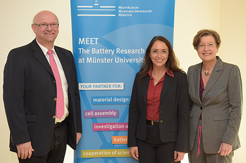 Auf ihrer zweitägigen Reise durch Nordrhein-Westfalen hat die Generalsekretärin der SPD im Bund, Yasmin Fahimi, Station am Batterieforschungszentrum MEET der Universität Münster gemacht. Sie informierte sich über den aktuellen Stand auf dem Feld der elektrochemischen Energiespeicherung und die Einsatzgebiete von Batterien. Begrüßt wurde sie von Prof. Dr. Ursula Nelles, Rektorin der Universität Münster, sowie Prof. Dr. Martin Winter, wissenschaftlicher Leiter am MEET.