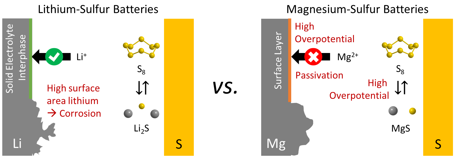 Lithium-Schwefel- und Magnesium-Schwefel Batterien im Vergleich
