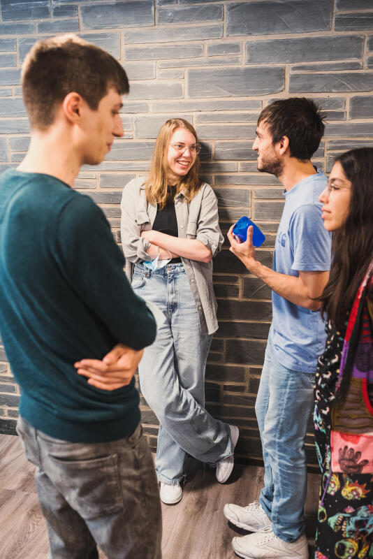 On the academic side, there was an exchange with former assistant professor Thomas Timmermann, who gave many insights into his difficult decision to leave the academic career path in a discussion round. Furthermore, each participant had the opportunity to present a part of their research or an exciting mathematical curiosity in a short talk. So there was no shortage of fun either, thanks to topics such as the nonsensical distribution of postcodes in Germany or solving cubic equations with origami. Furthermore, the participants' rhetorical skills were developed under the expert guidance of rhetoric trainer Dr. Elisa Franz.