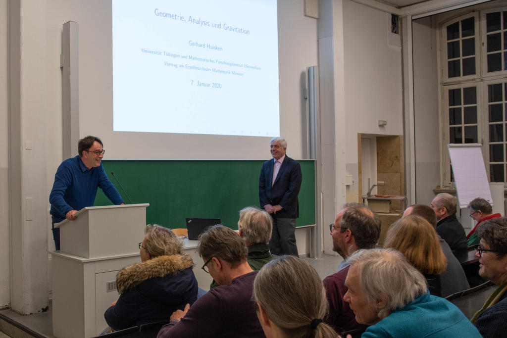 Um „Geometrie, Analysis und Gravitation“ ging es in der zweiten Veranstaltung der Reihe „Brücken in der Mathematik“ am 7. Januar 2020. Prof. Dr. Gerhard Huisken nahm die mehr als 200 Besucherinnen und Besucher mit auf eine Reise durch 2000 Jahre Wissenschaftsgeschichte.