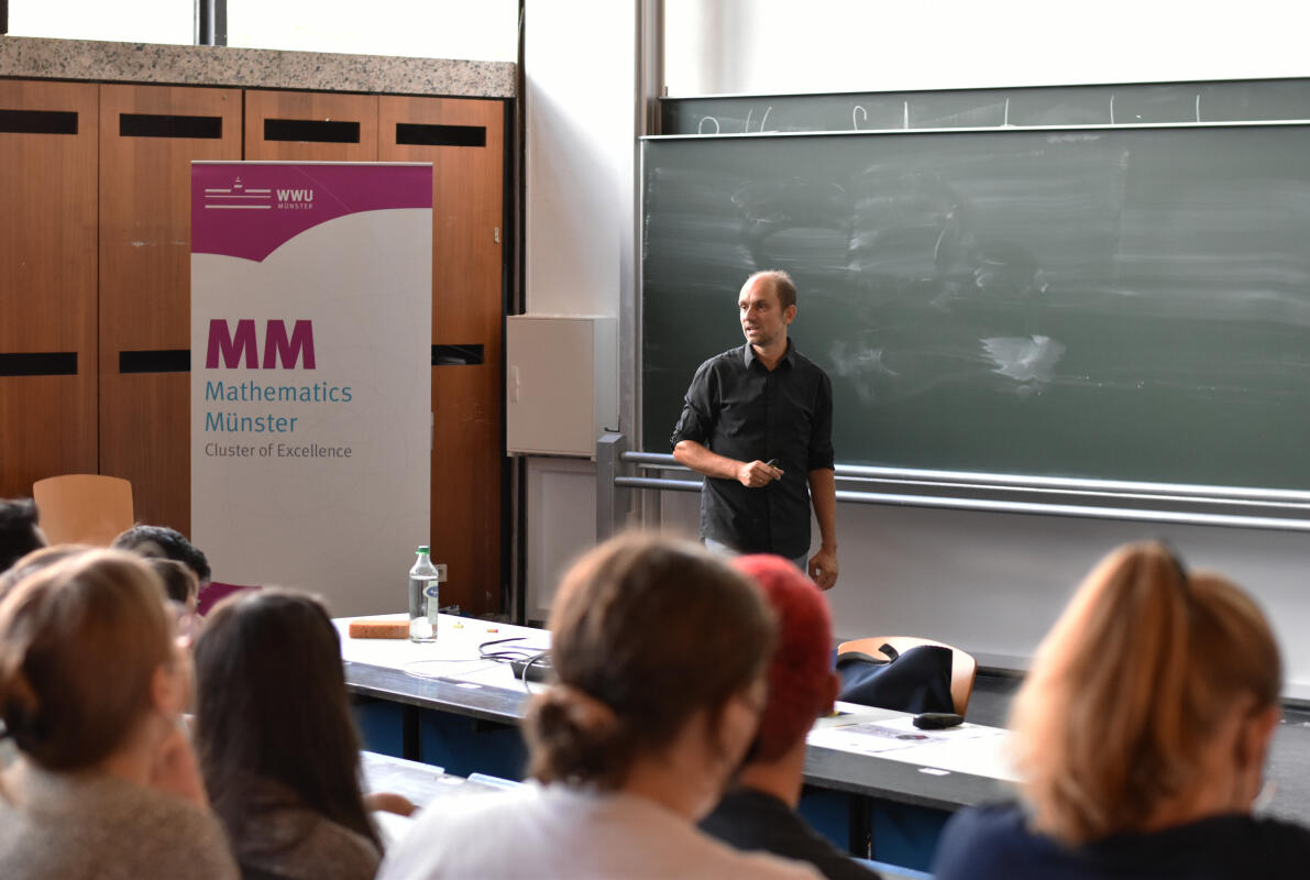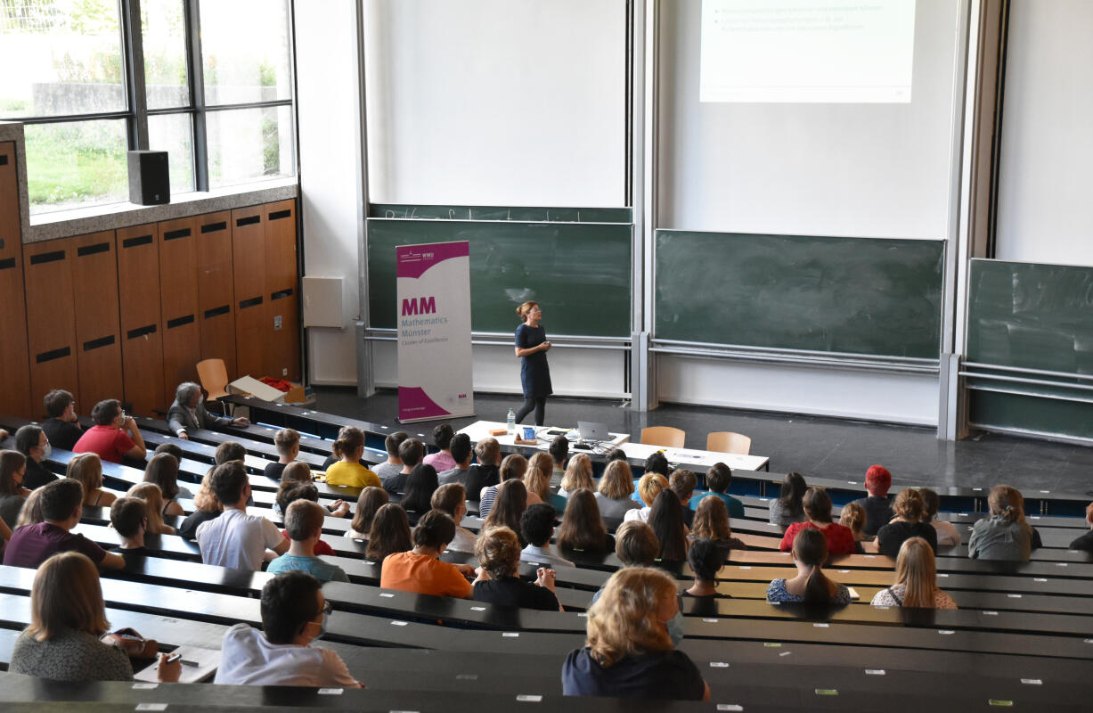 Vertreter der Bezirksregierung Münster, die die Akademie veranstaltet, und der WWU haben heute eine Vereinbarung unterzeichnet, die vielfältige Unterstützung durch den Exzellenzcluster Mathematik und den Fachbereich Mathematik und Informatik der WWU umfasst. Dazu gehören zum Beispiel Vorlesungen, bei denen die Teilnehmerinnen und Teilnehmer Hörsaalluft schnuppern können. Anschließend erhalten sie von Forschenden und Studierenden aus erster Hand Einblicke in die Studiengänge, den Studien- und Forschungsstandort Münster und eine Wissenschaftskarriere. Auch die Bereitstellung von Räumen für das Rahmenprogramm und organisatorische Hilfe gehören zur Kooperation.
