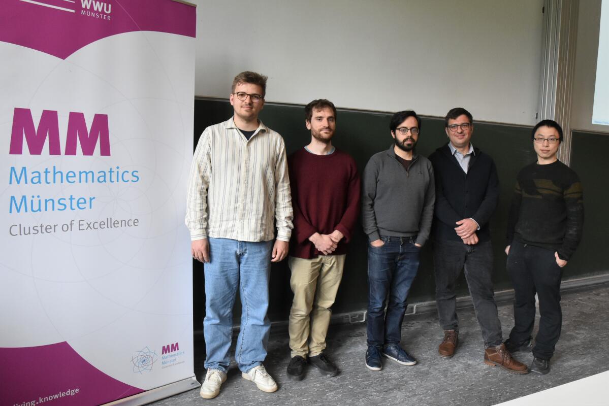Five new postdocs of Mathematics Münster introduced themselves at the MM Postdoc Colloquium within the Wilhelm Killing Colloquium on 13 April 2023. In short lectures they gave an insight into their fields of research and outlined the research questions they will be dealing with in Münster.