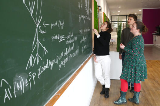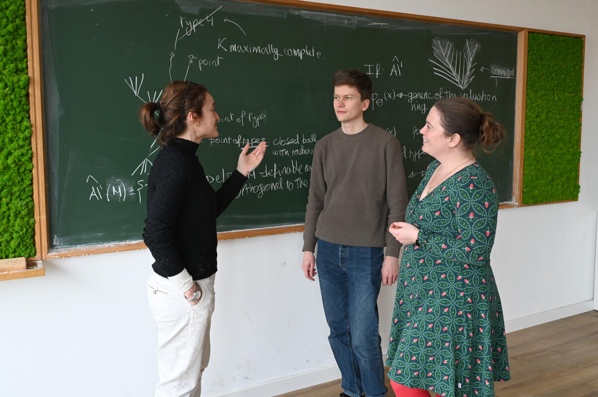 In 2023, the Alexander von Humboldt Foundation accepted Prof. Dr. Franziska Jahnke, investigator at Mathematics Münster, as a Henriette Herz Scout. That means that she can recommend postdocs from abroad for a renowned Humboldt Research Fellowship which can be granted directly. Now she has taken this opportunity to bring Dr. Mariana Vicaria and Dr. Floris Vermeulen to Münster. "Both Floris and Mariana are amazing candidates, and being able to fast track them for scholarships gave me the edge to bring each of them to Münster", Franziska Jahnke says. They are an ideal addition to her research group. "Our strength as a team is that we all work in the model theory of valued fields, but we have very different backgrounds and hence can combine our different expertise to solve problems which none of us could solve alone."