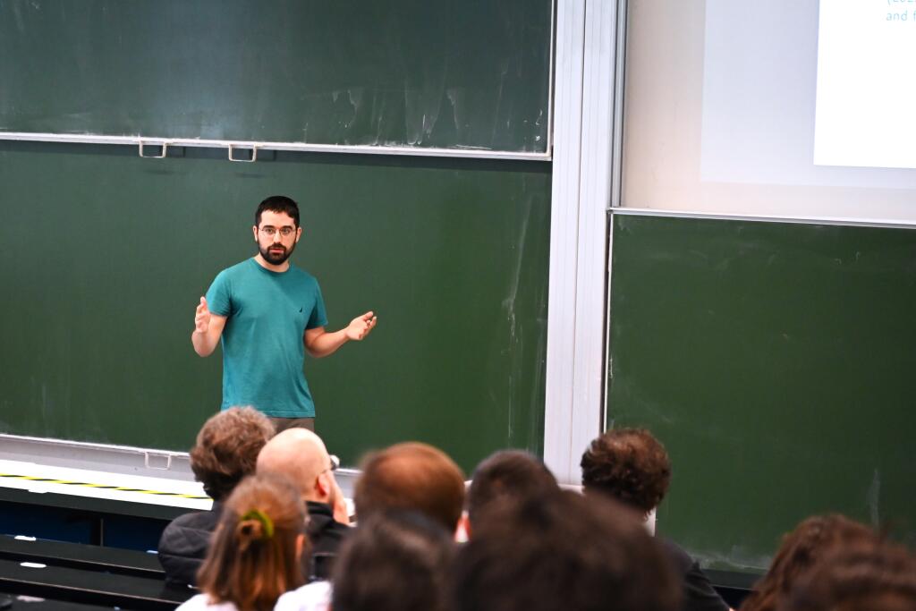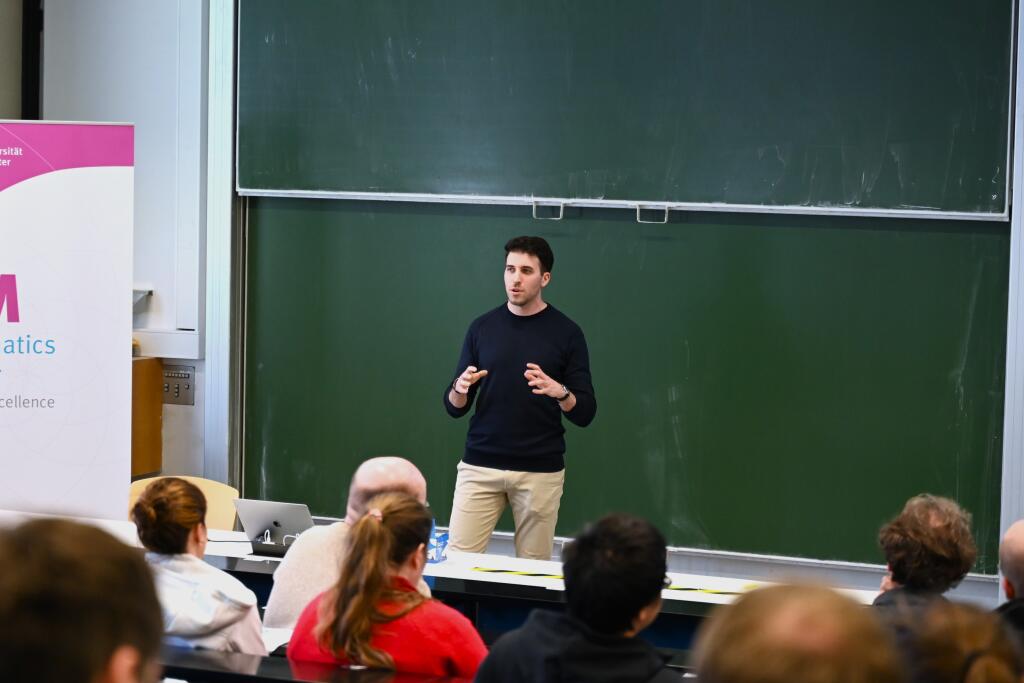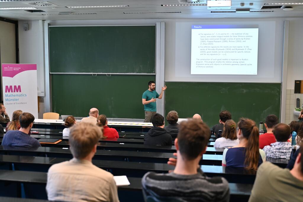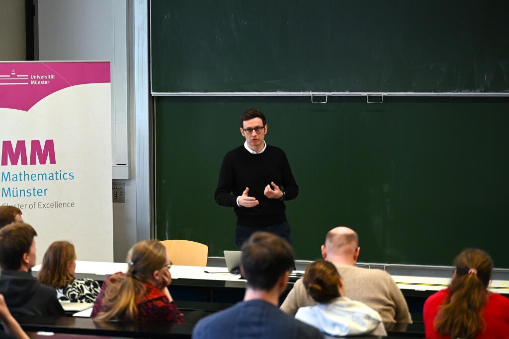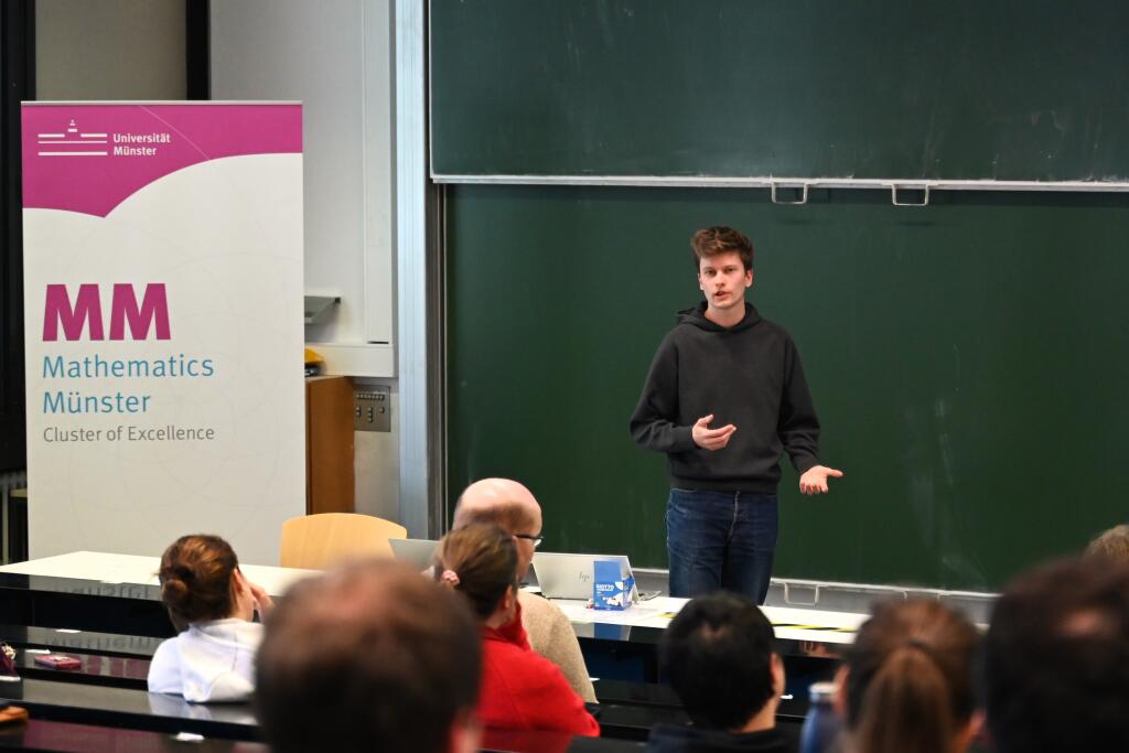 Six new postdocs of Mathematics Münster introduced themselves at the MM Postdoc Colloquium within the Wilhelm Killing Colloquium on 10 April 2025. In short lectures, they gave an insight into their fields of research and outlined the research questions they will be dealing with in Münster.
