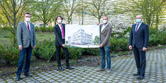 Seit 2022 entsteht der rund 3500 Quadratmeter Meter große Forschungsbau auf einer unbebauten Fläche am Orléans-Ring. Anfang 2027 soll er eröffnet werden. Bauherr des Projekts ist der Bau- und Liegenschaftsbetrieb Nordrhein-Westfalen (BLB NRW).