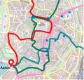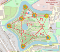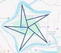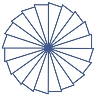 Wenn nun die kleineren spitzen Winkel in der Mitte aneinanderstoßen sollen, müssen sie wieder zusammen 360° ergeben. Also braucht man 360° ÷ 18° = 20 Dreiecke.