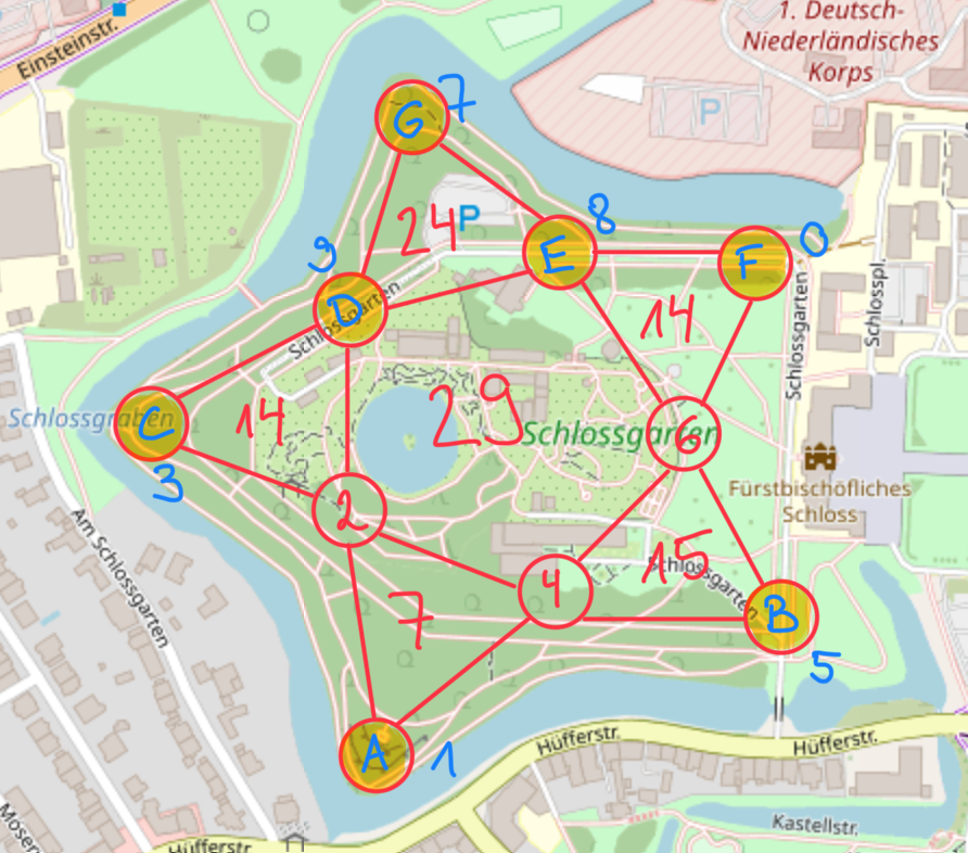 Mathematiker:innen lösen solche Aufgaben, indem sie eine Figur in bekannte Regeln zerlegen (Winkelsumme, Vollwinkel, Gleichverteilung) und daraus Schritt für Schritt die benötigte Anzahl ableiten.