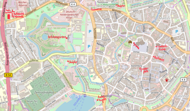 Der Mathe-Trail Münster ist ein Angebot des Exzellenzclusters Mathematik Münster der Universität Münster in Zusammenarbeit mit der NRW-SMIMS der Bezirksregierung Münster, erstellt von Linda Urban im März 2024 (Aktuelle Version: September 2024).