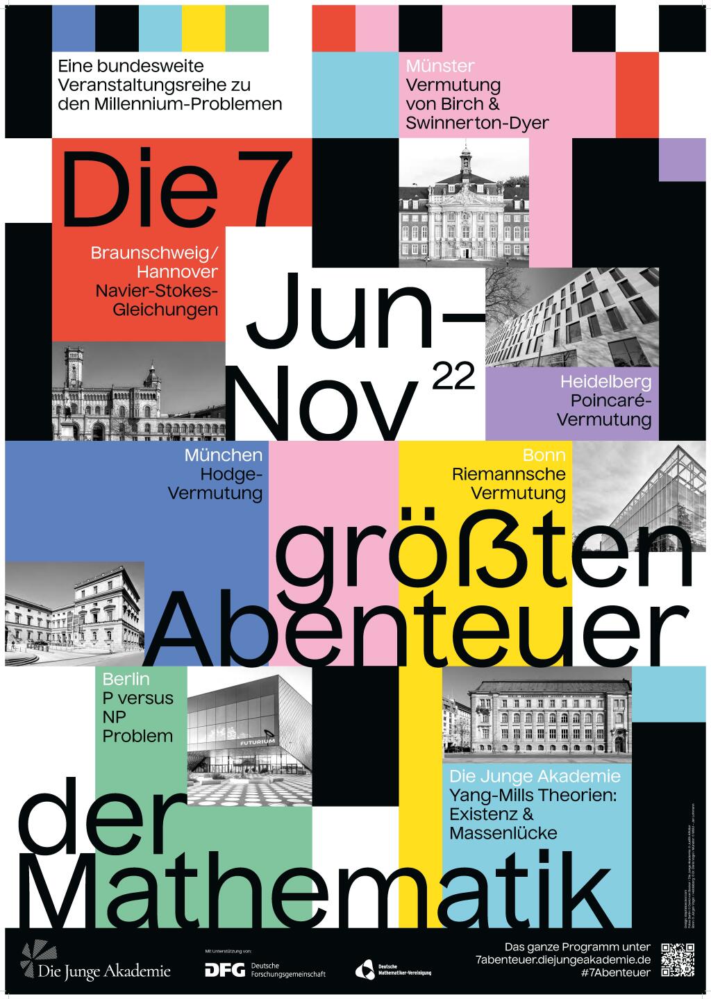 Von Frühjahr bis Herbst 2022 stellen verschiedene Forschungsstandorte je ein Millennium-Problem vor und geben dabei spannende Einblicke sowohl in die Geschichte als auch in die aktuelle mathematische Forschung. Bei uns in Münster steht die Vermutung von Birch und Swinnerton-Dyer im Mittelpunkt. Initiatoren der Reihe sind die Junge Akademie und die Deutsche Mathematiker-Vereinigung (DMV), unterstützt von der Deutschen Forschungsgemeinschaft (DFG).