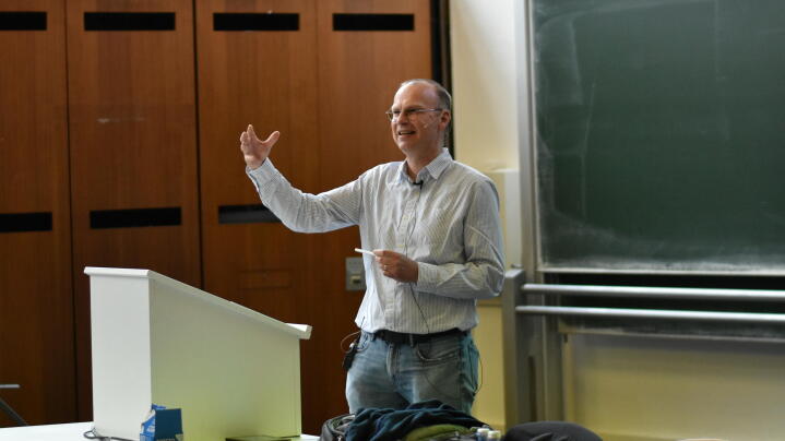 Der erste Referent der neuen Reihe "Brücken in der Mathematik" war am 2. Juli 2019 Leibniz-Preisträger Prof. Dr. Wolfgang Lück von der Universität Bonn. Sein Vortrag trug den Titel "Die Sprache, die Faszination und die Bedeutung der Mathematik". Der Topologe, ehemaliger Professor der Universität Münster, hatte viele unterhaltsame Beispiele im Gepäck.