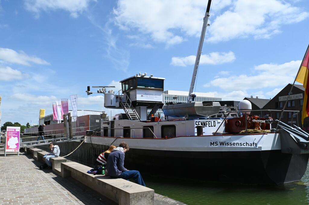 Die MS Wissenschaft, ein zum Ausstellungsort umgebautes Frachtschiff, fährt unter der Flagge des aktuellen Wissenschaftsjahres zum Thema "Zukunftsenergie" und erwartet die Besucher:innen im Rumpf mit einer interaktiven Ausstellung von rund 30 Exponaten – konzipiert von der Initiative Wissenschaft im Dialog im Auftrag des Bundesministeriums für Bildung und Forschung.