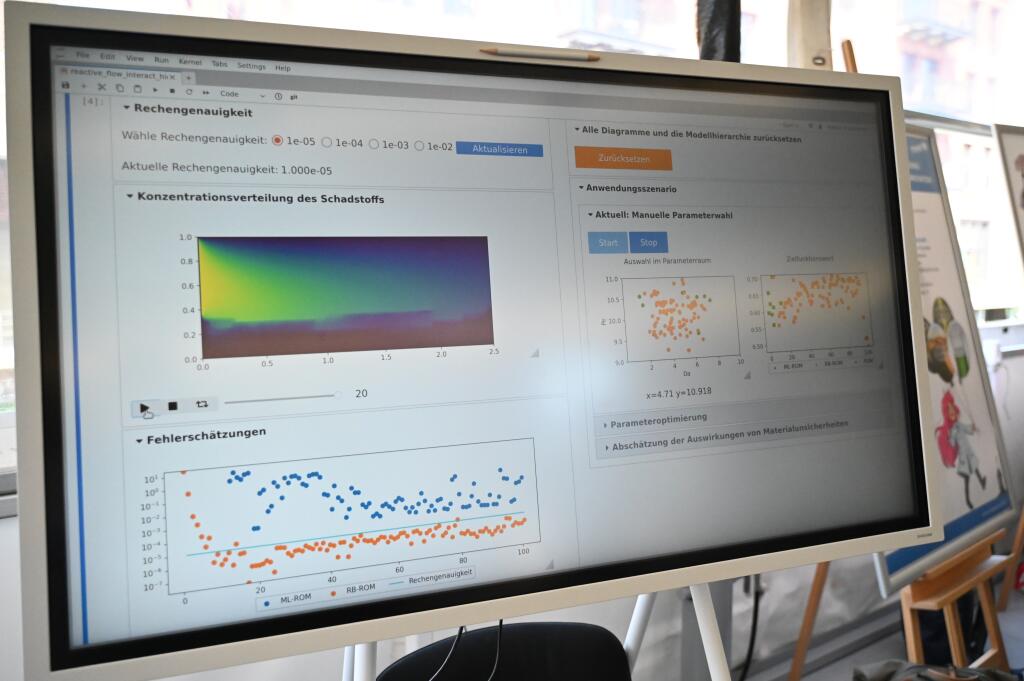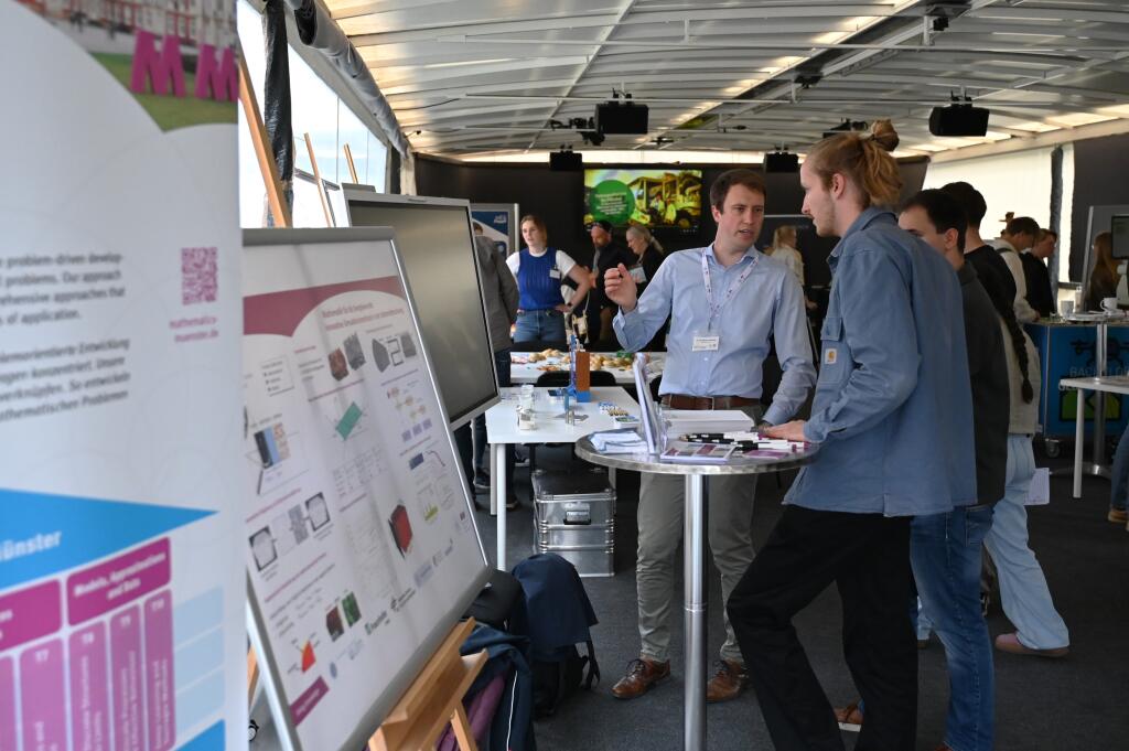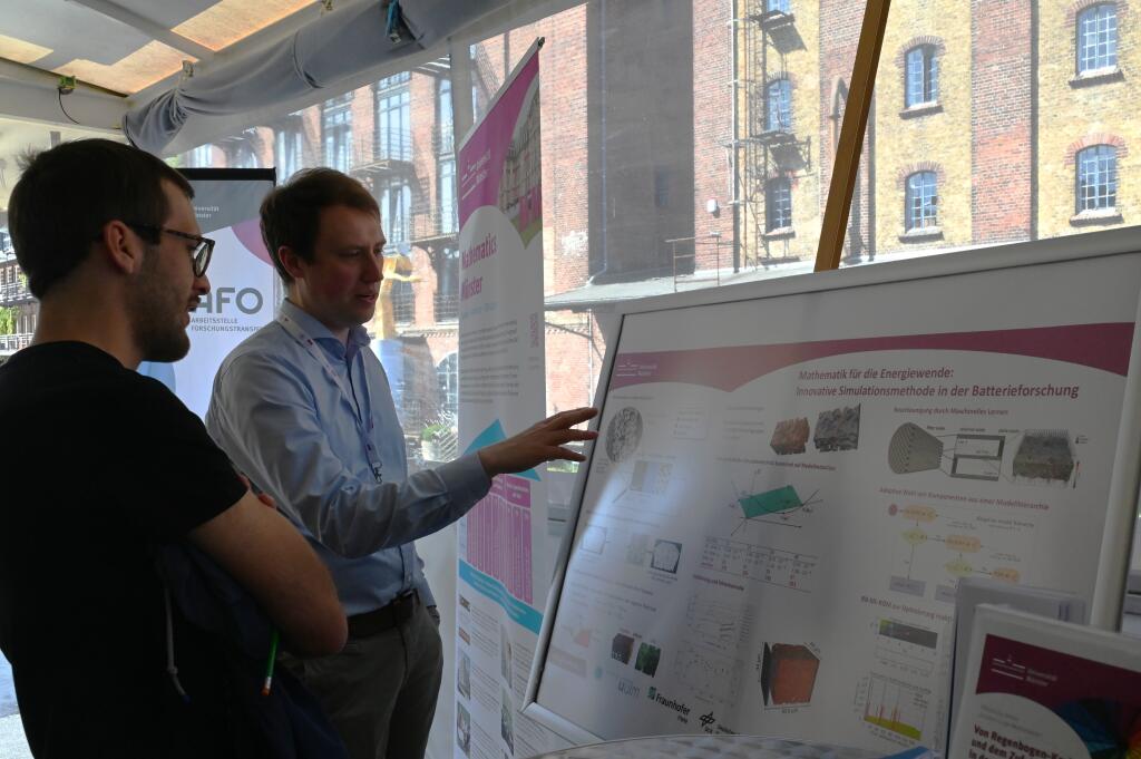 Beim "Zukunftsmarkt " an Bord des Ausstellungsschiffs "MS Wissenschaft" stellten am 11. Juni 2025 Prof. Dr. Mario Ohlberger und Dr. Hendrik Kleikamp, Forscher unseres Exzellenzclusters, neue mathematische Methoden vor, um Prozesse in Batterien am Computer zu untersuchen und zu optimieren. An einer interaktiven Station konnten Interessierte selbst mit den mathematischen Methoden experimentieren.