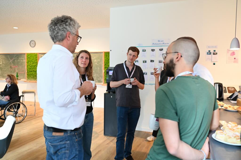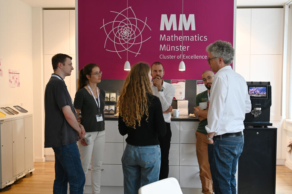 Stefan Nacke and his team visited us on 29 September 2025. In a conversation with Cluster spokesperson Prof. Dr. Thomas Nikolaus and managing director Dr. Anne Schindler, they discussed, among other topics, how Mathematics Münster builds bridges between different mathematical disciplines, the Cluster’s international collaborations, and the concept for the new research building of the Centre for Mathematics Münster. Afterwards, Stefan Nacke met with early-career researchers in the Common Room to talk about how mathematics and politics can work together to create a solid basis for political decision-making.