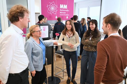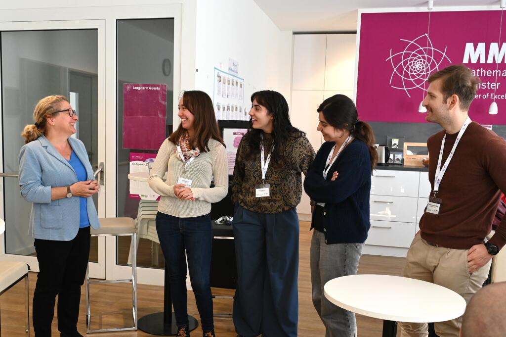 On 2 October 2025, we welcomed Svenja Schulze (SPD) and her team. A key focus of the discussion with Cluster spokespersons Prof. Dr. Thomas Nikolaus and Prof. Dr. Mario Ohlberger was the international orientation of the research and the Cluster community, along with related initiatives such as the Young African Mathematicians Programme (YAM). Short presentations of research projects highlighted the important role the Cluster’s findings play in fundamental research and in direct applications, particularly in the field of AI. During the informal exchange in the Common Room, early-career researchers from different countries shared their academic journeys and experiences.