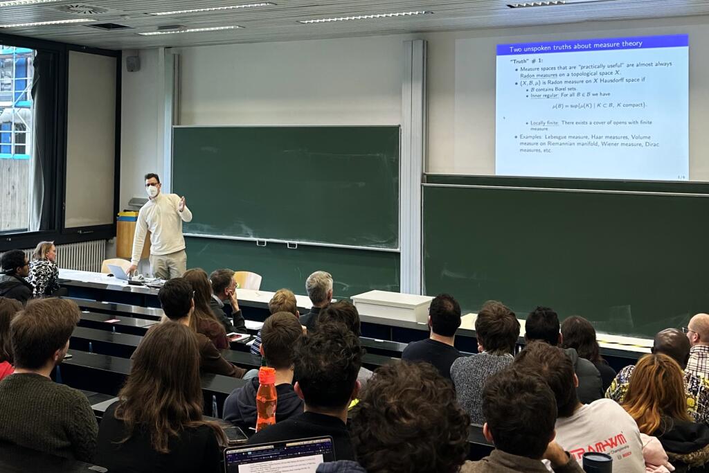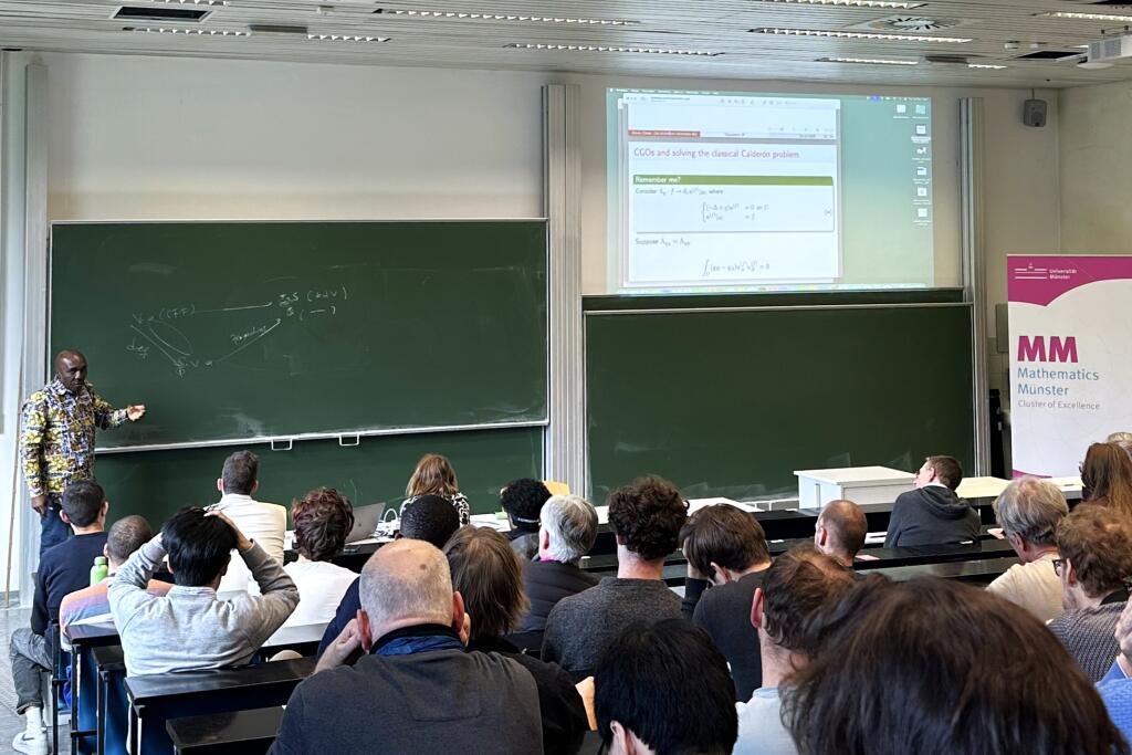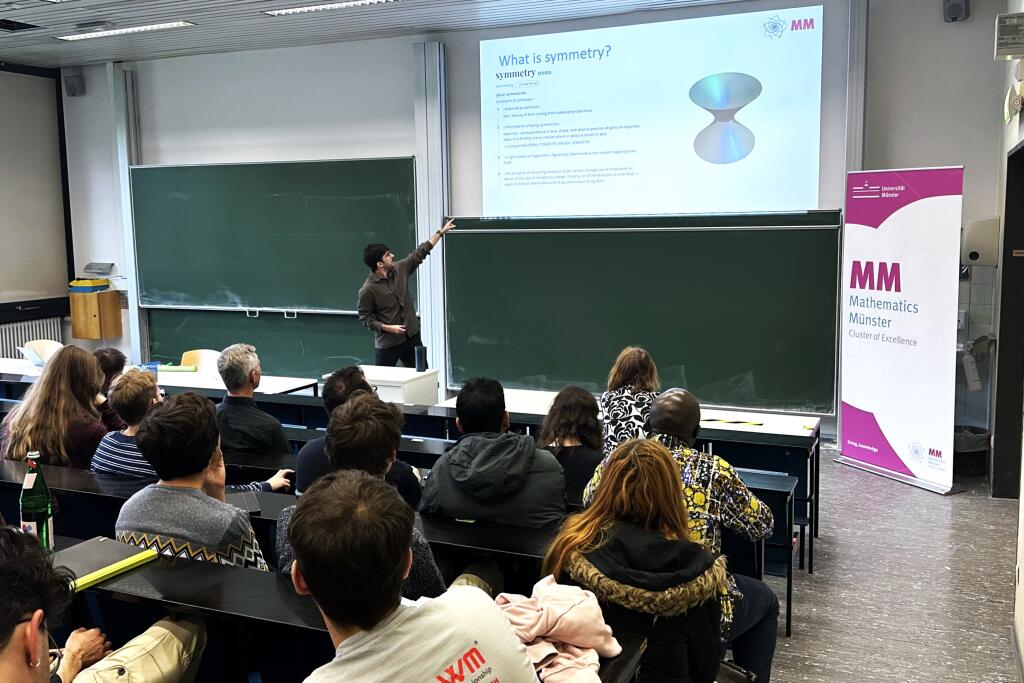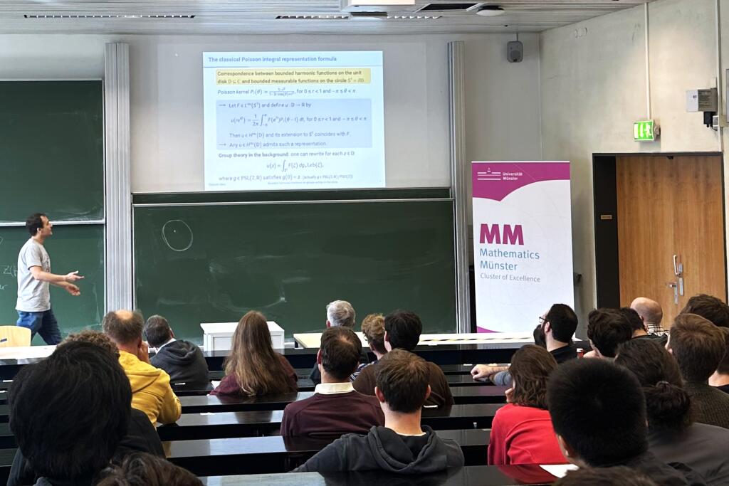 Seven new postdocs of Mathematics Münster introduced themselves at the MM Postdoc Colloquium within the Wilhelm Killing Colloquium on 16 October 2025. In short lectures, they gave an insight into their fields of research and outlined the research questions they will be dealing with in Münster.