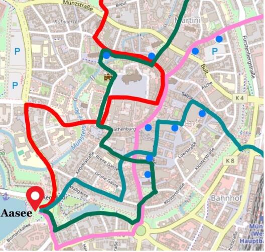 Unser Trail beginnt und endet in der Innenstadt von Münster, führt an vielen Wahrzeichen vorbei und ist ca. fünf Kilometer lang. - Für WEN?