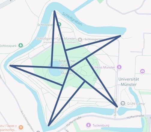 Der Mathe-Trail Münster ist ein Angebot des Exzellenzclusters Mathematik Münster der Universität Münster in Zusammenarbeit mit der NRW-SMIMS der Bezirksregierung Münster, erstellt von Linda Urban im März 2024, überarbeitet von Daniela Klümper im März 2026).