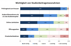 Die Frage lautete „Wie wichtig sind Ihnen die folgenden Eigenschaften der Kreuztools?“ aus Auswahloptionen zur Antwort standen: Vollständigkeit der Fragenpakete, Übersichtlichkeit der Webseite, Fragenkommentare, Weiterführendes Lernmaterial wie Lernkarten und Lehrbuchtexte, Nutzbarkeit unterwegs, Auswahl der Fragen nach Fachgebiet, Einfachheit des Kreuzens, Einfachheit der Registrierung, Kostet mich nichts, Nutzung auch ohne VPN.