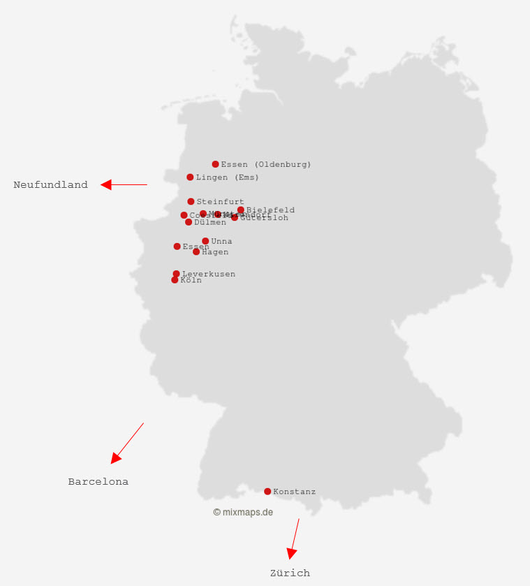 Orte, in denen das PJ abgeleistet wurde.