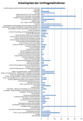 Die Umfrageteilnehmer konnten in einem Pulldown-Menü ihren Arbeitsplatz angeben. 93% entschieden sich für eine der 67 vorgegebenen Institute und Kliniken, 7% nannten „Sonstiges“.