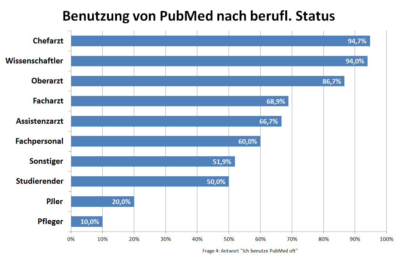 Und umgekehrt: Je höher der Arzt in der Hierarchie steht, desto eher benutzte er PubMed