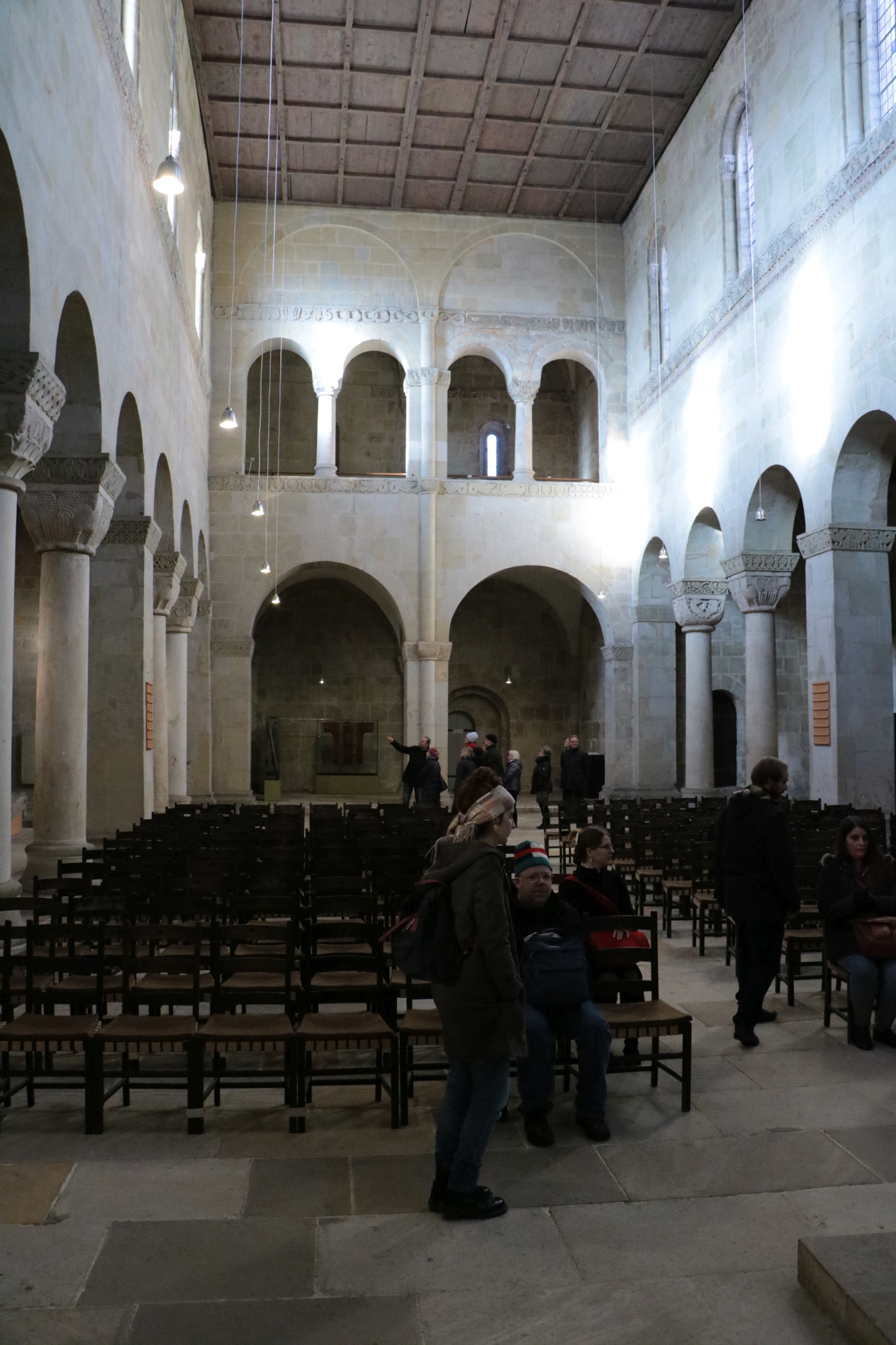 Nach einer mehrstündigen Zugfahrt trafen wir Freitagmittag in Wolfenbüttel ein. Gemeinsam mit den Studierenden der mittellateinischen Philologie von der Freien Universität Berlin (betreut von Susanne Schäfer, M.A.)konnten wir uns den gesamten Nachmittag unter der hervorragenden Leitung von Dr. Bertram Lesser einigen ausgewählten Martianus-Capella-Handschriften, aber auch der Wolfenbütteler Herzog-August-Bibliothek im Allgemeinen widmen. Neben den Handschriftenlektüreübungen der Studierenden war ein besonderes Highlight das gemeinsame Erkunden der mit illustrierten Initialen ausgestatteten Handschrift Cod. Guelf. 62 Gud. lat., eine Seltenheit unter den knapp 250 überlieferten De nuptiis-Handschriften und Handschriftenfragmenten. Am frühen Abend ging es weiter nach Quedlinburg, wo die Münsteraner und Berliner Studierenden Gelegenheit hatten, einander beim geselligen Abendessen kennenzulernen. Der Samstag gehörte ganz und gar dem architektonisch überaus beeindruckenden historischen Weltkulturerbe ‚Quedlinburg‘. Den Auftakt machte eine fachlich und rhetorisch ausgezeichnete Führung durch die Stiftskirche St. Servatius mit der Grablege Heinrichs I. und dessen Frau Mathilde. Besonders die zum Teil noch gut erhaltenen Reste der kunstvollen Malerei am Deckengewölbe der Grabstätte beeindruckte uns sehr, nicht zuletzt dadurch, dass dieses Bildprogramm mit demjenigen korrespondierte, das in dem berühmten Martinaus-Capella-Teppich dargestellt ist. Denn ursprünglich lag der mehrere Quadratmeter große Knüpfteppich, wie wir erfuhren, auf dem Fußboden des Chores, der zugleich die Decke der Krypta ist, sodass die Abbildungen von Gewölbedecke und Fußboden inhaltlich und funktional eine Einheit bildeten. Die Fragmente eben dieses um 1200 begonnenen Knüpfteppichs mit Motiven aus der mythologischen Lehrdichtung De nuptiis Philologiae et Mercurii des spätantiken Dichters Martianus Capella standen schließlich unbenommen im Mittelpunkt unseres Besuches. Die physische Präsenz der über einen Meter hohen und mehrere Meter langen Teilstücke, die wunderbar erhaltenen Farben und die künstlerische Gestaltung machten einmal mehr bewusst, welche Rolle die Ausbildung der jungen Damen an diesem über Jahrhunderte von Äbtissinnen geleiteten Damenstift spielte. Ein Vergleich des Bildprogramms mit der im Seminar auszugsweise gelesenen Dichtung schloss den offiziellen Rundgang ab. Den Nachmittag konnten alle Exkursionsteilnehmende zur weiteren Erkundung der Stadt und ihrer Museen nutzen, bevor wir uns nach der Verabschiedung von den Berliner abends überaus bereichert wieder zusammenfanden. Am kalten Sonntagvormittag, praktisch schon auf der Heimreise nach Münster, legten wir einen mehrstündigen Zwischenstopp in Halberstadt ein. Auch hier war die Führung durch einen der europaweit bedeutendsten mittelalterlichen Domschätze hervorragend und dauerte um Einiges länger als geplant. Nach einer kurzen Stärkung mussten wir auch schon weiterreisen und kamen spät am Abend erschöpft aber glücklich in Münster an.