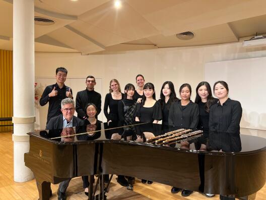 Es werden Kompositionen von Carl Philipp Emanuel Bach, George Enescu, Pierre Sancan, Carl Reinecke, Johann Sebastian Bach, Georges Hüe und Franz Doppler zu hören sein. Es spielen: Xinyue Hu, Elnur Misirli, Yi-Ju Hung, Naria Jeon, Kathrin Haberkern, Shaya Eldar und Hyeyoung Yoon (Flöte), Damiano Pistacchio (Oboe) sowie Clara Teichmüller, Yang-An Lin und Risa Kobayashi (Klavier). Der Eintritt ist frei.