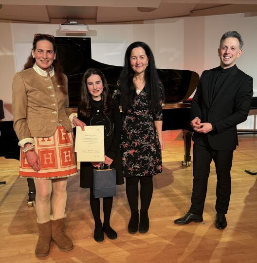 Im Rahmen des Jugendakademie-Konzertes am 6. Februar in der Musikhochschule, erhielt die 12-jährige, hochtalentierte und bereits sehr erfolgreiche Jungakademistin und Harfenistin Clara Ehlker (Klasse Eva Bäuerle-Gölz) ein Exzellenzstipendium des Clubs Soroptimist International, Club Münster Mitte. „Soroptimist International“ ist ein globaler Club berufstätiger Frauen, der sich dafür engagiert, den Status von Mädchen durch Bildung und Förderung nachhaltig zu verbessern. Bereits zum 12. Mal in Folge fördert der Club junge musikalische Exzellenz der Jugendakademie Münster. Überreicht wurde das Förderstipendium von SI Präsidentin Dr. Kathrin Schepers. Herzlichen Glückwunsch!