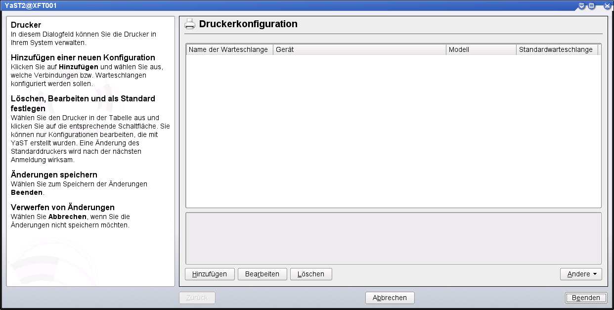 Open the YaST Control Centre, select the category "Printer" under "Hardware".