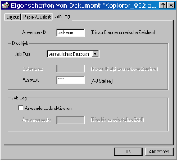 To print, e.g. under Word, proceed as follows: Open the print dialog with File -> Print, select the desired printer and click on "Properties". In the "Job Log" area, enter any ID, select "Confidential Printing" as the job type and enter any password. This password ensures that no one else can print the file.