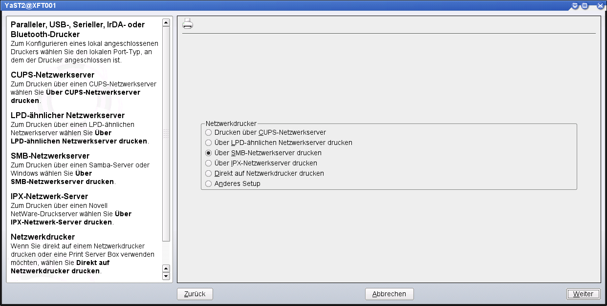Select "Print via SMB Network Server", "Next".