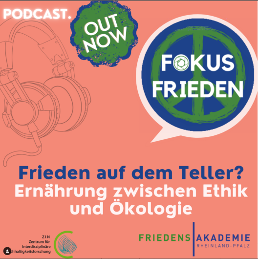 Der Podcast "Fokus Frieden" wird seit 2020 von der Friedensakademie Rheinland-Pfalz betrieben. Seine Gründerinnen ZIN-Mitglied Dr'in Rebecca Froese und Julia Renner betreiben ihn auch nach ihrem Wechsel an andere Institutionen weiter, gemeinsam mit Christopher Rohles von der Friedensakademie. In jeder Folge sprechen die Moderator*innen mit einem*einer Expert*in über ein aktuelles Thema um Konflikt- und Friedensdynamiken zu verstehen, Friedenspotenziale in den Fokus zu rücken und Aktionsräume für friedliche Transformationsprozesse zu schaffen.