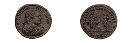 In den Jahren 305 bis 310 n. Chr. wurden, zeitgleich in fast allen aktiven Münzstätten des Imperiums, von London bis Karthago, von Antiochia bis Alexandria produziert, zwei Serien von Prägungen in Gold und Bronze emittiert, letztere offenbar in großen Mengen und zur Verbreitung in allen Regionen des Reiches. Ihr Zweck war, der Reichsbevölkerung eine wichtige politische Botschaft zu übermitteln: die freiwillige Abgabe der Macht durch den Begründer des 284 n. Chr. etablierten tetrarchischen Herrschaftssystems, Diokletian, und seinen Mitkaiser, Maximian, nach über 20jähriger Regierung. Die Münzen zeigen auf ihren Vorderseiten motivgleich einen der beiden Herrscher im Amtsgewand eines Konsuls mit Lorbeerkranz und einem Olivenzweig, dem Symbol des Friedens und der Ordnung, sowie einer mappa, ein Zeremonialtuch, als weiterer Amtsinsignie in Händen. Die umlaufende Legende lautet D(omino) N(ostro) DIOCLETIANO FELICISSIMO SEN(iori) AVG(gusto) bzw. D(omino) N(ostro) MAXIMIANO BEATISSIMO SEN(iori) AVG(gusto). Die unterschiedlichen Attribute felicissimus und beatissimus deuten diskret den Vorrang Diokletians vor dem von ihm 286 n. Chr. zum Mitkaiser erhobenen Maximian an. Die traditionelle Herrscherbezeichnung Augustus (in der Spätantike zudem dominus noster, "unser Herrscher") wird hier, einmalig in der römischen Münzgeschichte, um senior erweitert: wie die Rückseite erweist, zu übersetzen nicht mit 'der Ältere', sondern 'im Ruhestand'.