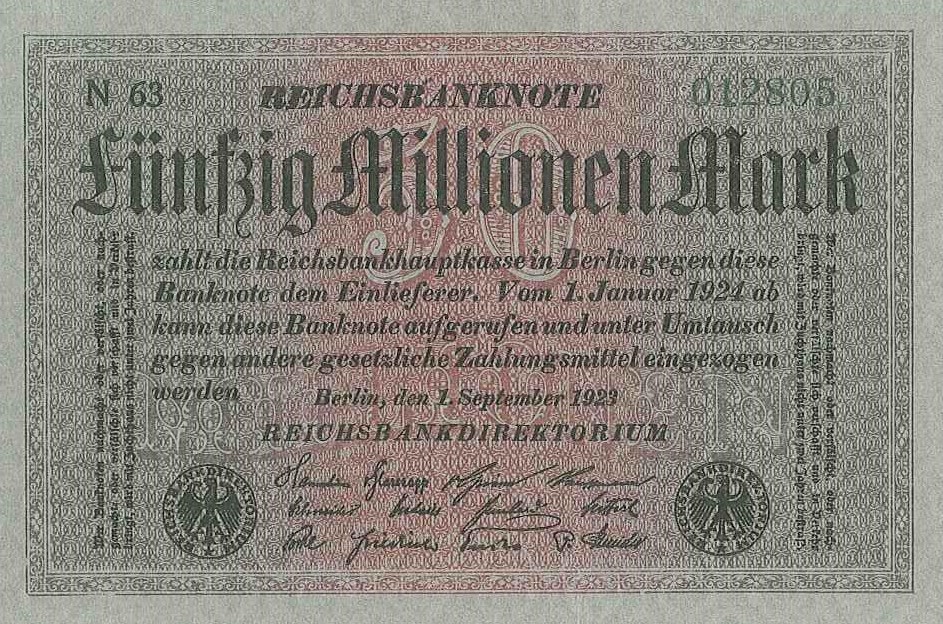 Allen hyperinflationären Perioden ist der Durchgriff von Regierungen auf die Zentralbank und die deutliche Expansion der Geldmenge zur Finanzierung staatlicher Ausgaben gemeinsam. Anhand der abgebildeten 50 Millionen Mark Note vom 1. September 1923 aus der Endphase der deutschen Hyperinflation lässt sich erahnen, auf welche Größenordnungen Geldmengen während hyperinflationärer Perioden anschwellen. Die enormen Geldmengenerhöhungen schlagen sich in entsprechenden Preissteigerungen nieder, welche die Krise eines Landes zusätzlich verschärfen. Weite Bevölkerungsschichten führen in hyperinflationären Perioden einen tag-täglichen Überlebens-kampf, da die Preise lebensnotwendiger Güter und Medikamente binnen weniger Tage deutlich steigen und die Kaufkraft der Währung rasant sinkt. Dieser Beitrag zur Instabilität eines Landes ist in der Kriegshistorie gezielt genutzt worden, indem große Mengen Falschgeld als Waffe zur Destabilisierung eingesetzt wurden. Ein Beispiel hierfür liefert der Erste Irakkrieg 1990/1991.