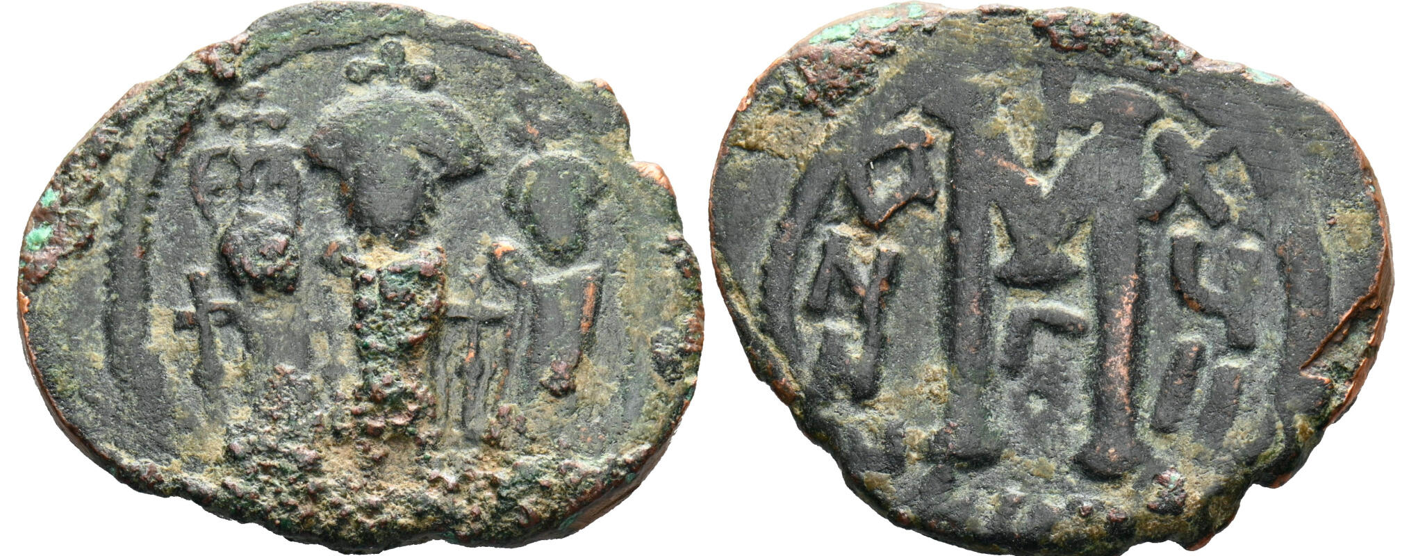 Im Norden des syrischen Gebiets waren nur byzantinische und pseudo-byzantinische Münzen im Umlauf. Auch sind entsprechende Angaben, wie das schwer lesbare KVΠP auf dem Revers und die Offizin, weder einer Emission noch einer offiziellen byzantinischen Münzstätte zuzuordnen.