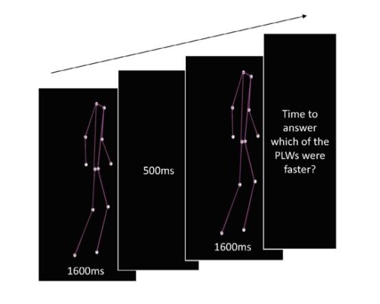 The explanations for the motor learning deficits observed in individuals with Down Syndrome (DS) emphasize a complex interplay among the structural and functional body abnormalities of this population. To further comprehend how this pathological condition functions, researchers are now attempting to understand how visual and motor systems process information and how this processing correlates with the development of motor learning in individuals with DS. The purpose of the current study was to investigate whether individuals with DS are able to perceive and differentiate between visually presented sequences of biological motion that portrayed walking at different speeds. We tested 17 participants with DS and 17 typical develop individuals (CG) who were matched for age and gender on a task requiring subjects to make fine discriminations between biological motion stimuli in the form of point-light-walkers that walked at different speeds. Individuals with DS were unable to recognize differences in walking speeds between walkers, and also demonstrated slower reaction times on the task than the CG. The CG was able to perform the task well above chance level and faster than DS subjects. These results shed light on the biological motion processing capabilities of people with DS, and provide insights for future research in this field. doi: 10.4172/2472-1115.1000123