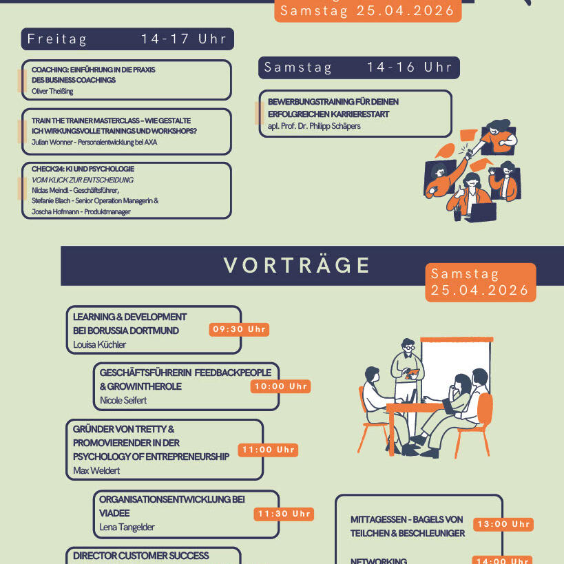 Two days packed with inspiration, practical knowledge, and networking: Our workshops and presentations offer you valuable insights into business coaching, training, customer psychology, and career development. Learn from experienced experts, expand your skills, and make new connections. Whether it’s hands-on workshops on Friday or engaging presentations on Saturday—here you’ll find ideas that will truly help you move forward. Join us and take an active role in shaping your future!