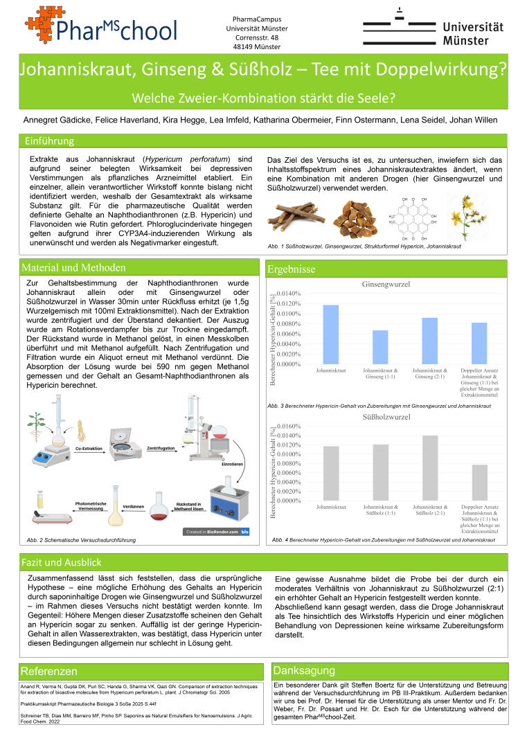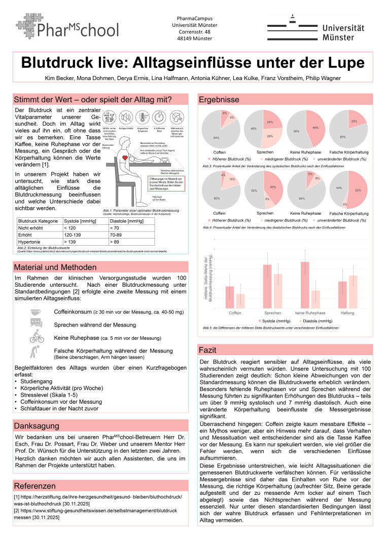 Das PharMSchool-Symposium stellt den Abschluss der Einzelprojekte dar und bietet den Studierenden einen angemessenen Rahmen, um die Ergebnisse aus vier Semestern Themenarbeit in Form von Vorträgen und Postern zu präsentieren. Das Symposium wird von der Apothekerkammer Westfalen-Lippe (AKWL) sowie der Deutschen Pharmazeutischen Gesellschaft (DPhG) als Fortbildungsveranstaltung für Apotheker anerkannt. Als wissenschaftliche Veranstaltung wendet sich das Symposium an ein Fachpublikum aus Pharmazeuten, Medizinern und weiteren Naturwissenschaftlern aus dem Bereich „Life Sciences“.