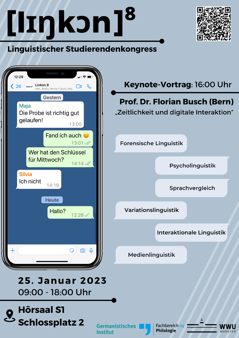 Neben Vorträgen zu gegenwärtigen Diskursen wie Body Shaming oder Corona werden etwa Fragen zu Phänomenen aus der Dialektologie oder Psycholinguistik diskutiert. Vortragstitel lauten zum Beispiel: "'ich könnt KOTzen; natürlich wieder ICH ne,' - Sprachliche Interaktion in Gesellschaftsspielen" oder "Aufforderungen in der interaktionalen Schriftlichkeit am Beispiel von WhatsApp-Chats". Den Abschluss bildet um 16 Uhr ein Gastvortrag von Prof. Dr. Florian Busch (Universität Bern). Sein Vortrag beschäftigt sich mit der Rolle von Zeitlichkeit in der digitalen Interaktion.