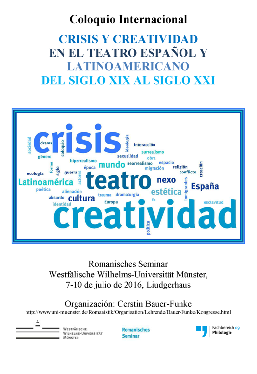 Zu einer internationalen Tagung zum Thema "Crisis y Creatividad en el teatro español y latinoamericano del siglo XIX al siglo XXI" („Krise und Kreativität im spanischen und lateinamerikanischen Theater vom 19. zum 21. Jahrhundert") lädt das Romanische Seminar der Universität Münster von Donnerstag, 7. Juli, bis Sonntag, 10. Juli, ins Liudgerhaus, Überwasserkirchplatz 3, ein.