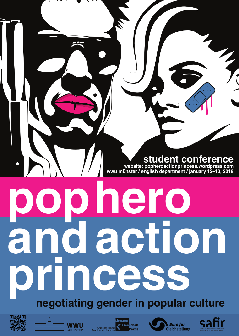 "Pop Hero and Action Princess? Negotiating Gender in Popular Culture" ist der Titel einer internationalen Konferenz, die Studierende des Englischen Seminars der Universität Münster geplant haben. Sie findet am 12. und 13. Januar am Englischen Seminar, Raum ES 131, Johannisstraße 12-20, statt. Alle Interessierten sind herzlich eingeladen, an der englischsprachigen Konferenz teilzunehmen. Eine kostenlose Registrierung ist über die Konferenzhomepage möglich.