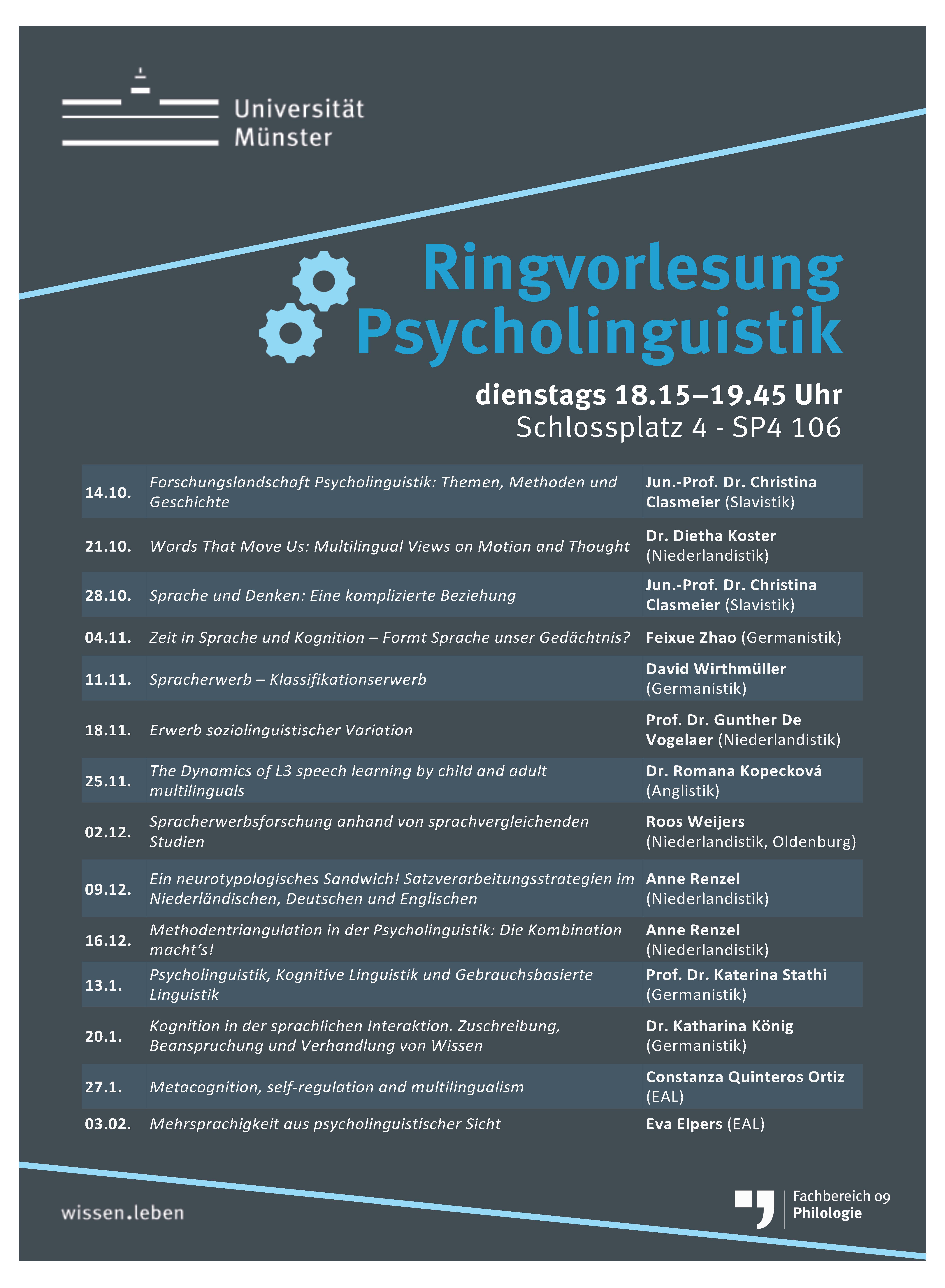 Hier finden Sie eine Übersicht der Ringvorlesungen und Vortragsreihen, die im aktuellen Semester am Fachbereich Philologie oder in Kooperation mit Einrichtungen und Mitgliedern des Fachbereichs stattfinden. Die Reihen sind öffentlich, alle Interessierten sind herzlich willkommen.