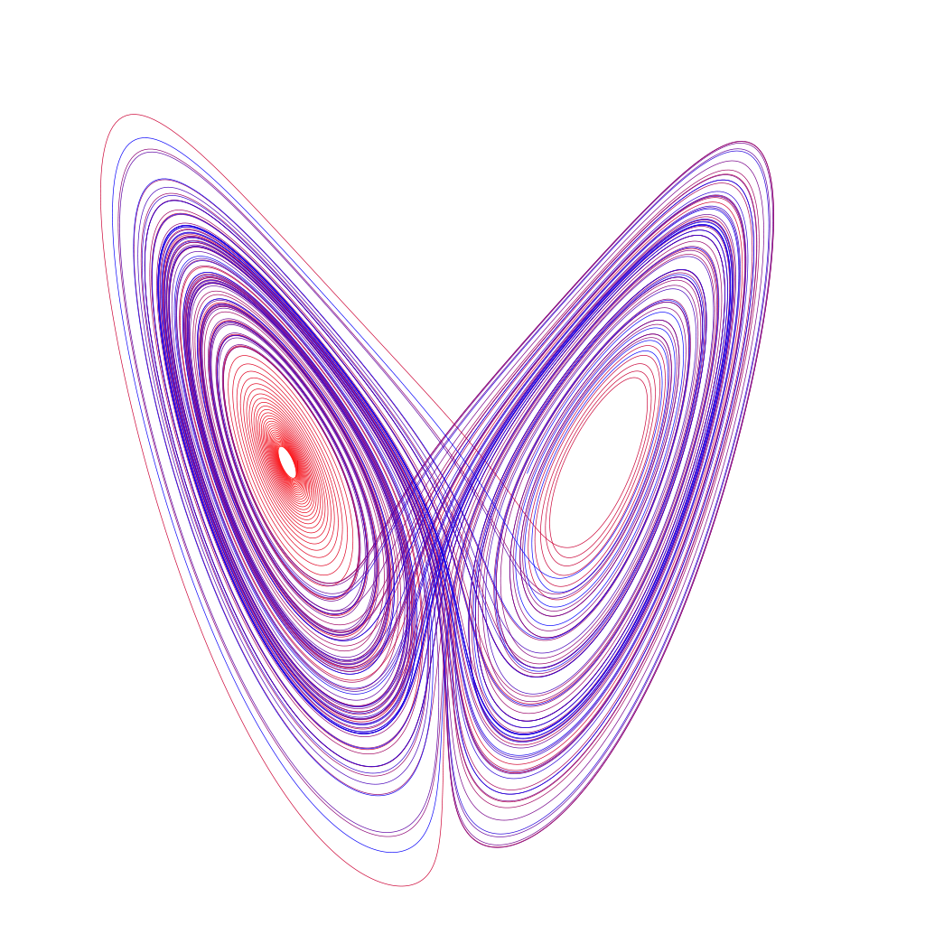 Bei der Modellierung des Wetters oder des Lasers mit einem Set von drei Gleichungen, den sogenannten Lorenz-Gleichungen, entsteht ein Attraktor, der den dreidimensionalen Raum nur wenig füllt. Dies ist der seltsame Lorentz-Attraktor, auch bekannt als „Schmetterlings-Attraktor“ aufgrund seiner charakteristischen Form.