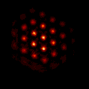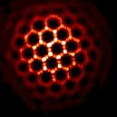 bei einem bestimmten Schwellwert der Leistung in der Ebene senkrecht zur Ausbreitungsrichtung des Laserstrahles eine hexagonale Struktur auftritt. Steigert man die