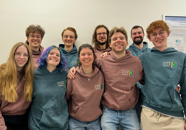 The Geophysics Student Council currently consists of (from left to right), (back row) Moritz Wendel, Lars Krampe, Killian Nitzschke, Nino Krämer, (front row) Annalena Büchner, Lucia Proppe, Laura Eberhard, Lennard Frühling, Elias Schladebusch. Jan Schwarte is not pictured. Below is a list of all the members of the student council, their responsibilities, and their email addresses.