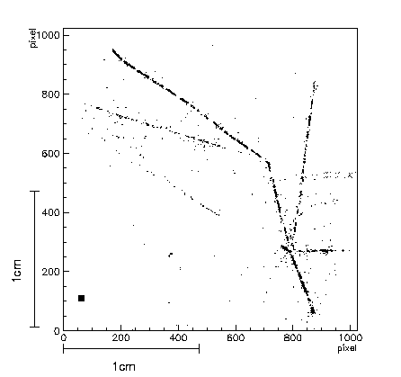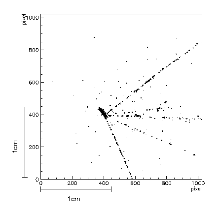 An event taken in the CERN wide band neutrino using the chain with the EBCCD: