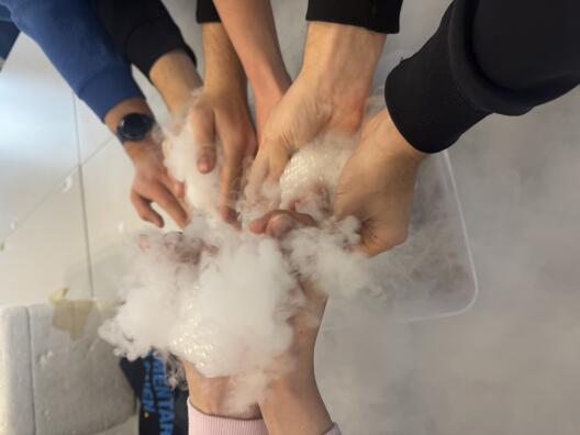 Die Schülerinnen und Schüler der neunten Klassenstufe des Gymnasiums Paulinum haben gemeinsam mit uns die DIY-Nebelkammern mit Trockeneis gebaut. Dabei liegt unser besonderes Augenmerk auf der Vermittlung der Methodik in der aktuellen Forschung der Teilchenphysik. Die Grundlagenforschung der Teilchenphysik liefert regelmäßig spannende Erkenntnisse, von denen die Gesellschaft direkt profitiert. Beispiele hierfür sind das HTTP- und das WWW-Protokoll sowie der kapazitive Touchscreen. Beides wurde direkt am CERN entwickelt und als Open Source der Gesellschaft zur Verfügung gestellt.