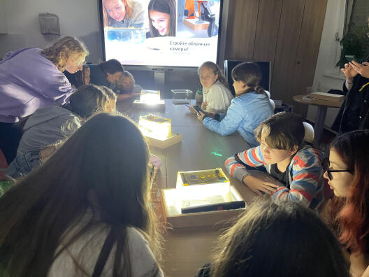 Am 27.07.2023 fand im MExLab ExperiMINTe der von Jessica Oertel organisierte MINT-Tag statt. Zu diesem sind 44 Kinder und Jugendliche aus der ukrainischen Stadt Winnyzja eingeladen worden. Das Institut für Kernphysik hat an diesem Tag mit den Kindern die Netzwerk Teilchenwelt-Nebelkammer gebaut und spannende Videos aus den Forschungslaboren am GSI und CERN gezeigt. Zum Abschluss der Veranstaltung hat Prof. Andronic noch ein Grußwort an die Kinder gerichtet und Prof. Galatyuk hat den Kindern und Jugendlichen ihren persönlichen Weg von der Ukraine ans GSI in Deutschland in deren Muttersprache erzählt. Im Anschluss konnten die Kinder noch Fragen stellen.